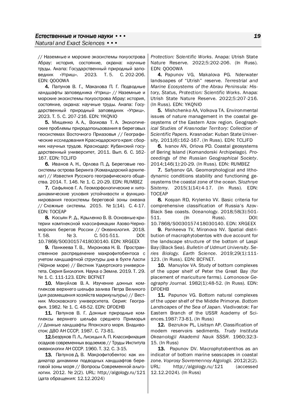 7. Сафьянов Г. А. Геоморфологические и литодинамические условия устойчивости и функционирования геосистемы береговой зоны океана // Сложные системы. 2015. № 1(14). С. 4-17.
