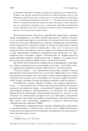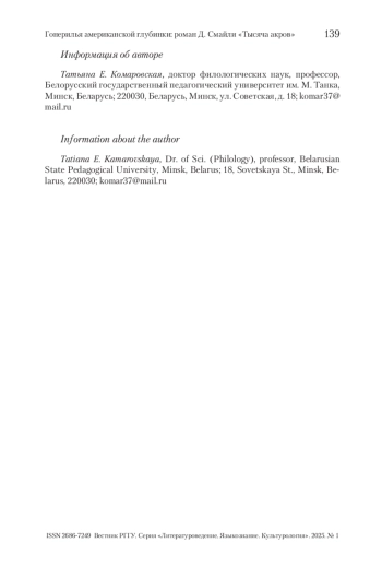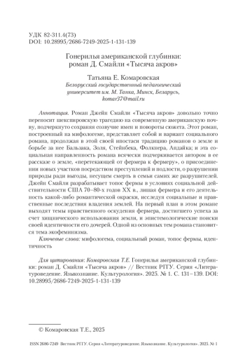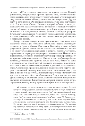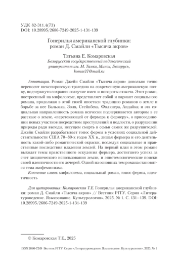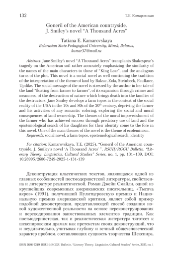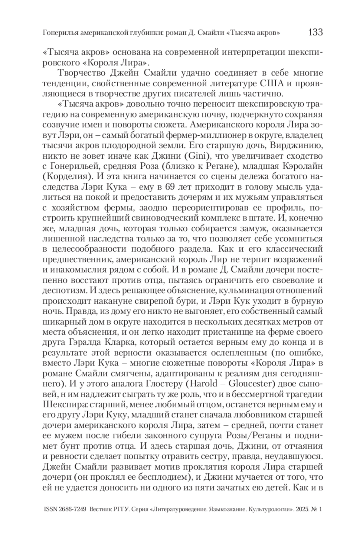 КОМАРОВСКАЯ Т. Е. ГОНЕРИЛЬЯ АМЕРИКАНСКОЙ ГЛУБИНКИ: РОМАН Д. СМАЙЛИ «ТЫСЯЧА АКРОВ» // ВЕСТНИК РГГУ. СЕРИЯ «ЛИТЕРАТУРОВЕДЕНИЕ. ЯЗЫКОЗНАНИЕ. КУЛЬТУРОЛОГИЯ». 2025. № 1