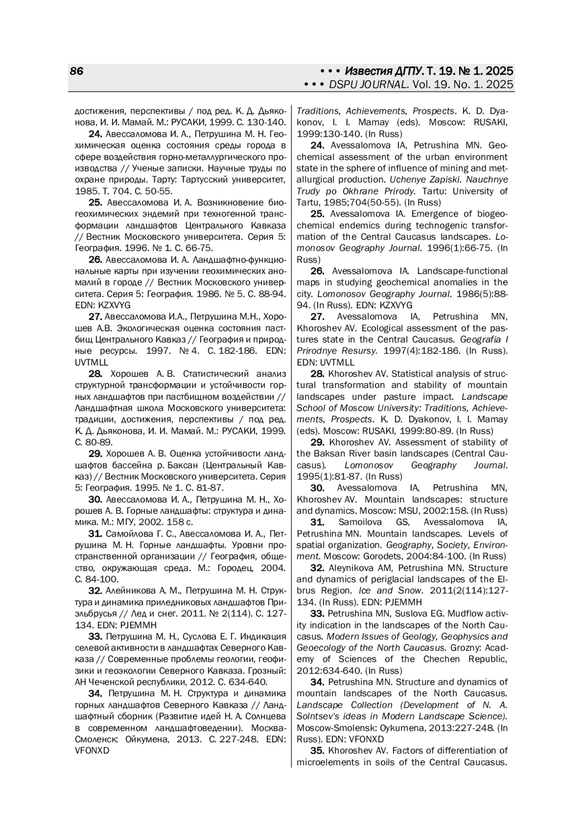 25. Авессаломова И. А. Возникновение биогеохимических эндемий при техногенной трансформации ландшафтов Центрального Кавказа // Вестник Московского университета. Серия 5: География. 1996. № 1. С. 66-75.