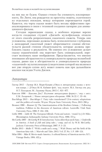 7. Mollet 2013 - Mollet T. “With a smile and a song…”. Walt Disney and the birth of the American fairy tale // Marvels and Tales. 2013. Vol. 27. No. 1. P. 109-124.