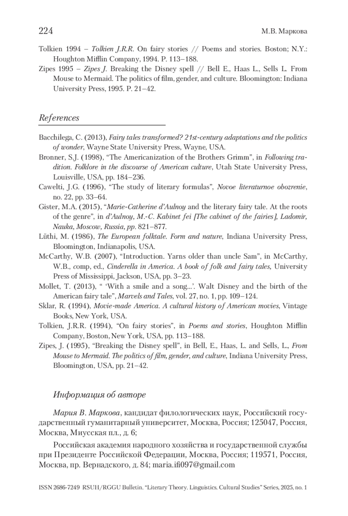 10. Zipes 1995 - Zipes J. Breaking the Disney spell // Bell E., Haas L., Sells L. From Mouse to Mermaid. The politics of film, gender, and culture. Bloomington: Indiana University Press, 1995. P. 21-42.