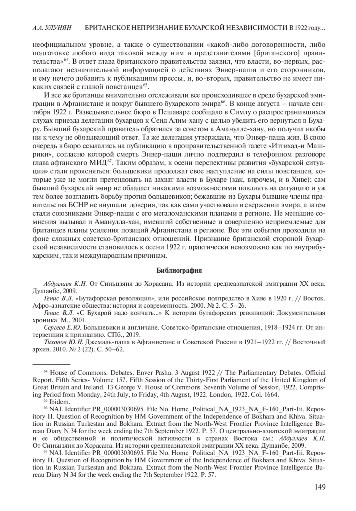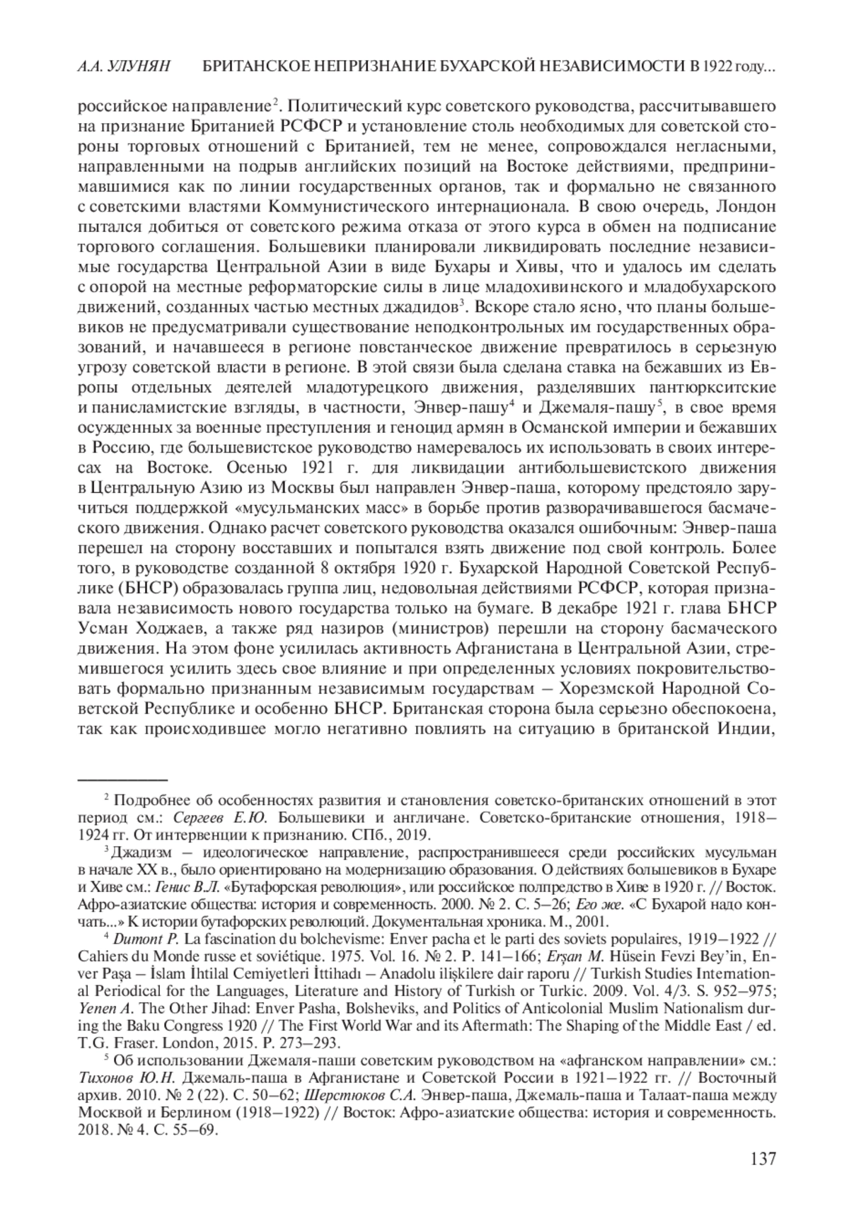 6. Улунян Ар.А. Туркестанский плацдарм. 1917-1922. Британское разведывательное сообщество и британское правительство. М., 2019.
