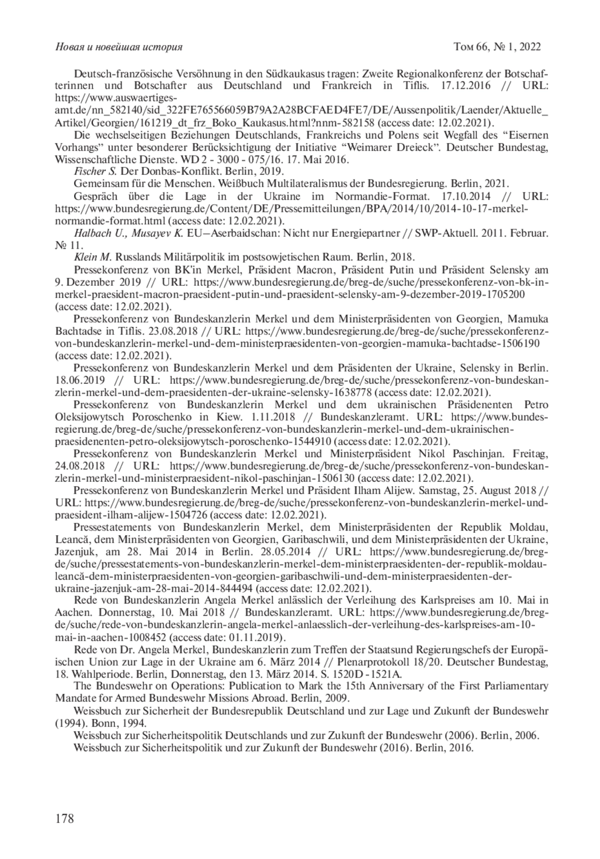 Статья: К ВОПРОСУ ПЕРИОДИЗАЦИИ УЧАСТИЯ ФРГ В УРЕГУЛИРОВАНИИ ВООРУЖЕННЫХ КОНФЛИКТОВ НА ПОСТСОВЕТСКОМ ПРОСТРАНСТВЕ (2022)