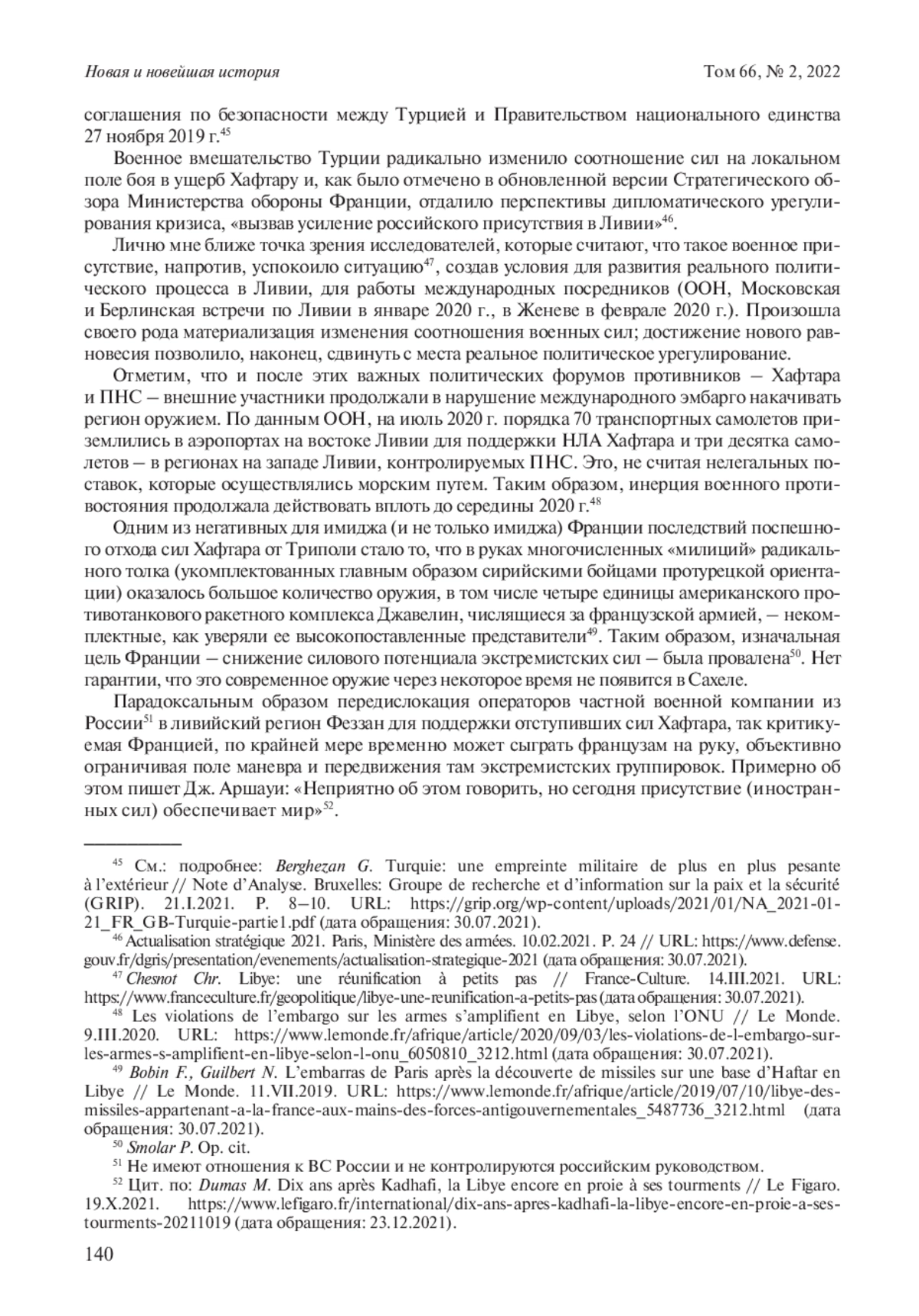36. Gillon J. France-Libye: le maréchal Haftar, l’ami controversé de l’Élysée // Jeune Afrique. 18.III.2020. URL: https://www.jeuneafrique.com/mag/909987/politique/le-marechal-haftar-lami-libyen-controverse-de-lelysee/ (access date: 30.07.2021).