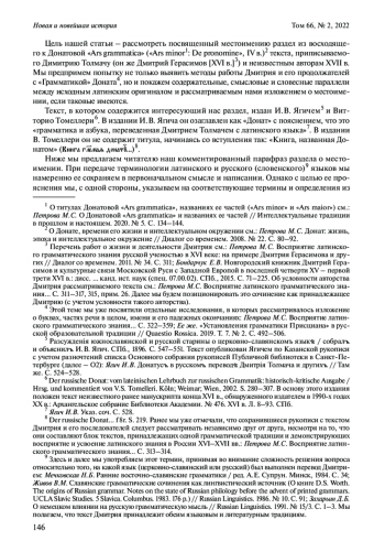 14. Ягич И.В. Донатусъ въ русскомъ перевод\\ Дмитрiя Толмача и другихъ // Разсужденiя южнославянской и русской старины о церковно-славянскомъ языкэ / собралъ и объяснилъ И.В. Ягич. СПб., 1896. С. 524-528.