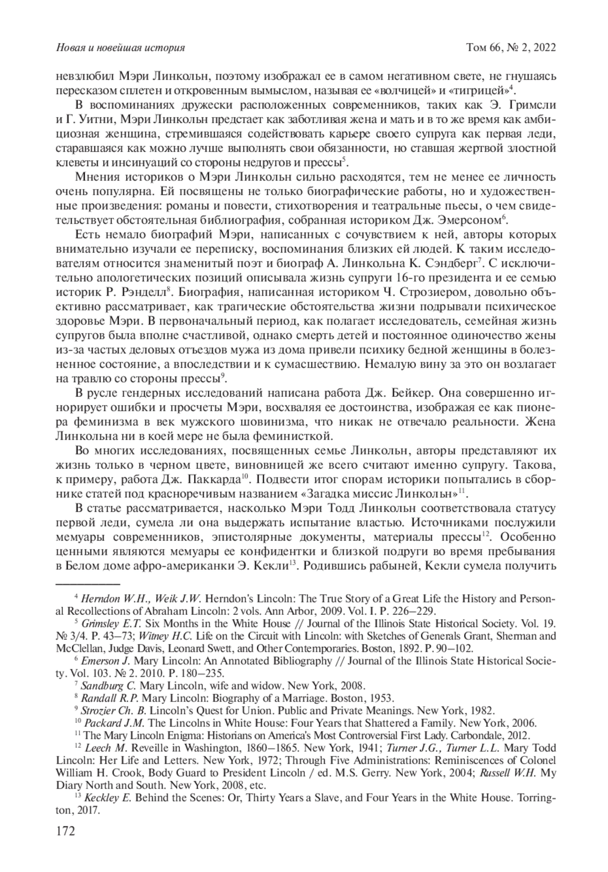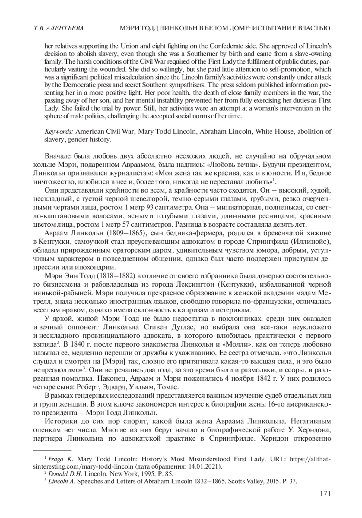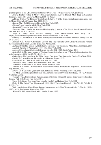 АЛЕНТЬЕВА Т. В. МЭРИ ТОДД ЛИНКОЛЬН В БЕЛОМ ДОМЕ: ИСПЫТАНИЕ ВЛАСТЬЮ // НОВАЯ И НОВЕЙШАЯ ИСТОРИЯ. 2022. № 2
