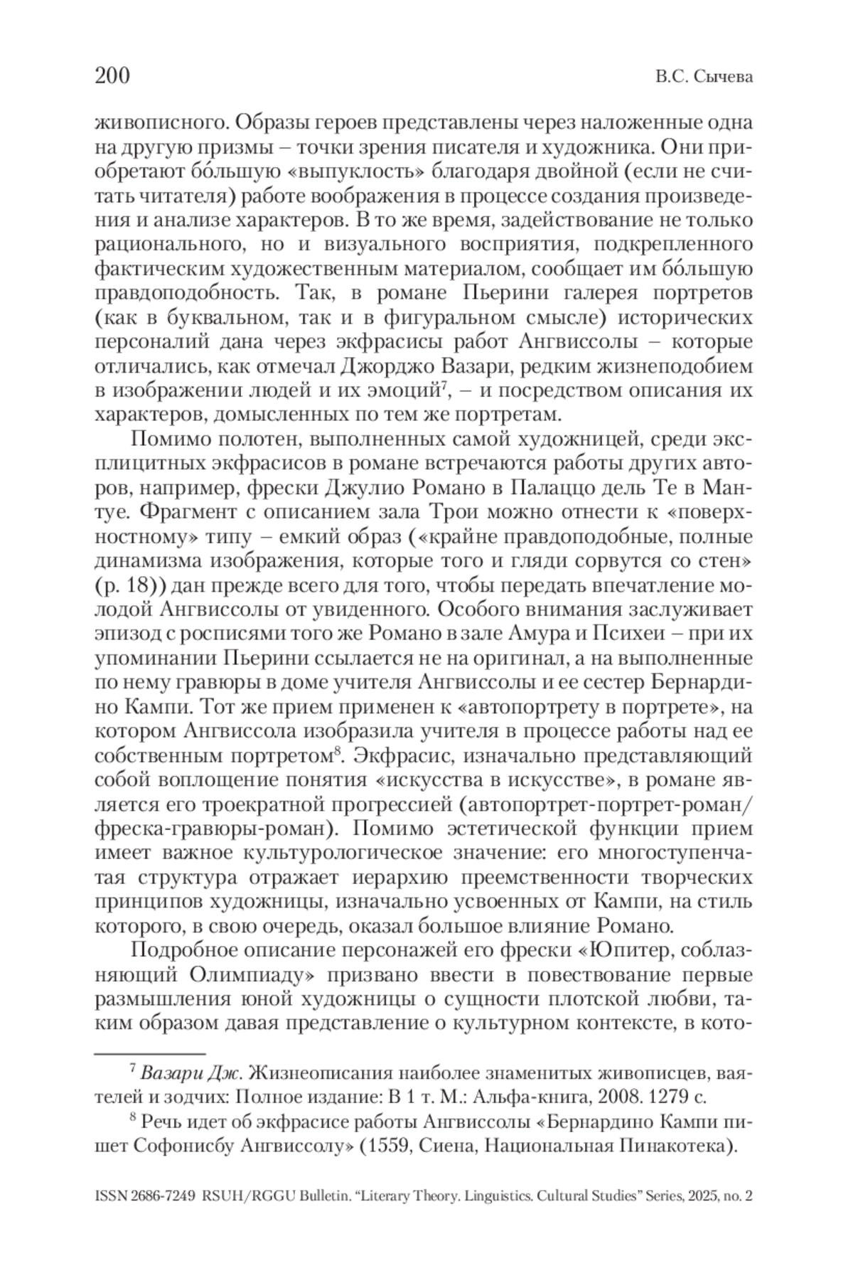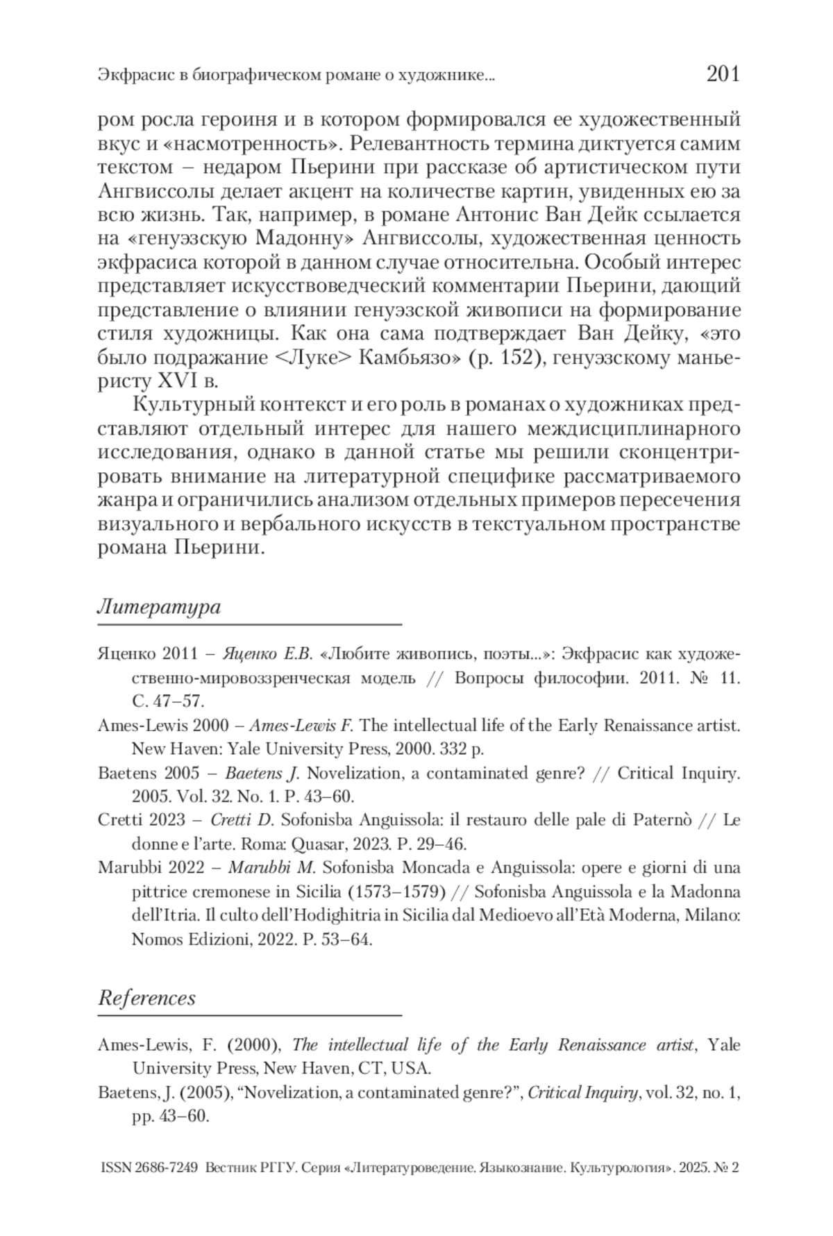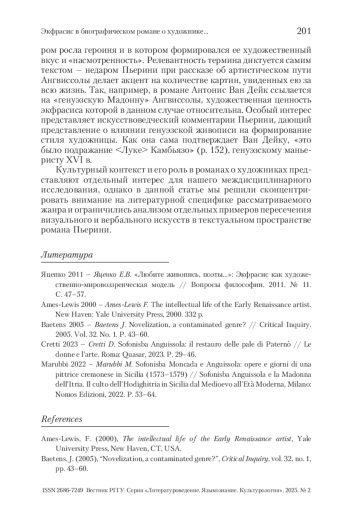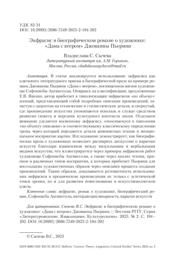 СЫЧЕВА В. С. ЭКФРАСИС В БИОГРАФИЧЕСКОМ РОМАНЕ О ХУДОЖНИКЕ: «ДАМА С ВЕЕРОМ» ДЖОВАННЫ ПЬЕР // ВЕСТНИК РГГУ. СЕРИЯ «ЛИТЕРАТУРОВЕДЕНИЕ. ЯЗЫКОЗНАНИЕ. КУЛЬТУРОЛОГИЯ». 2025. № 2