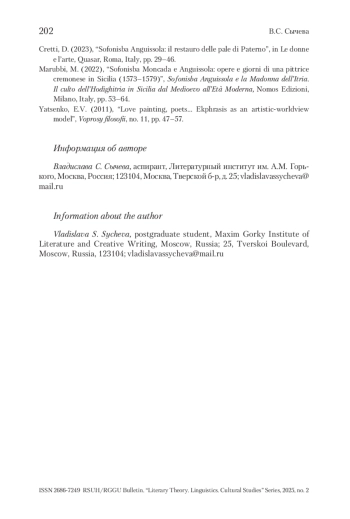 Ключевые фразы: экфрасис, роман о художнике, биографический роман, софонисба ангвиссола, интердисциплинарность, парагон искусств