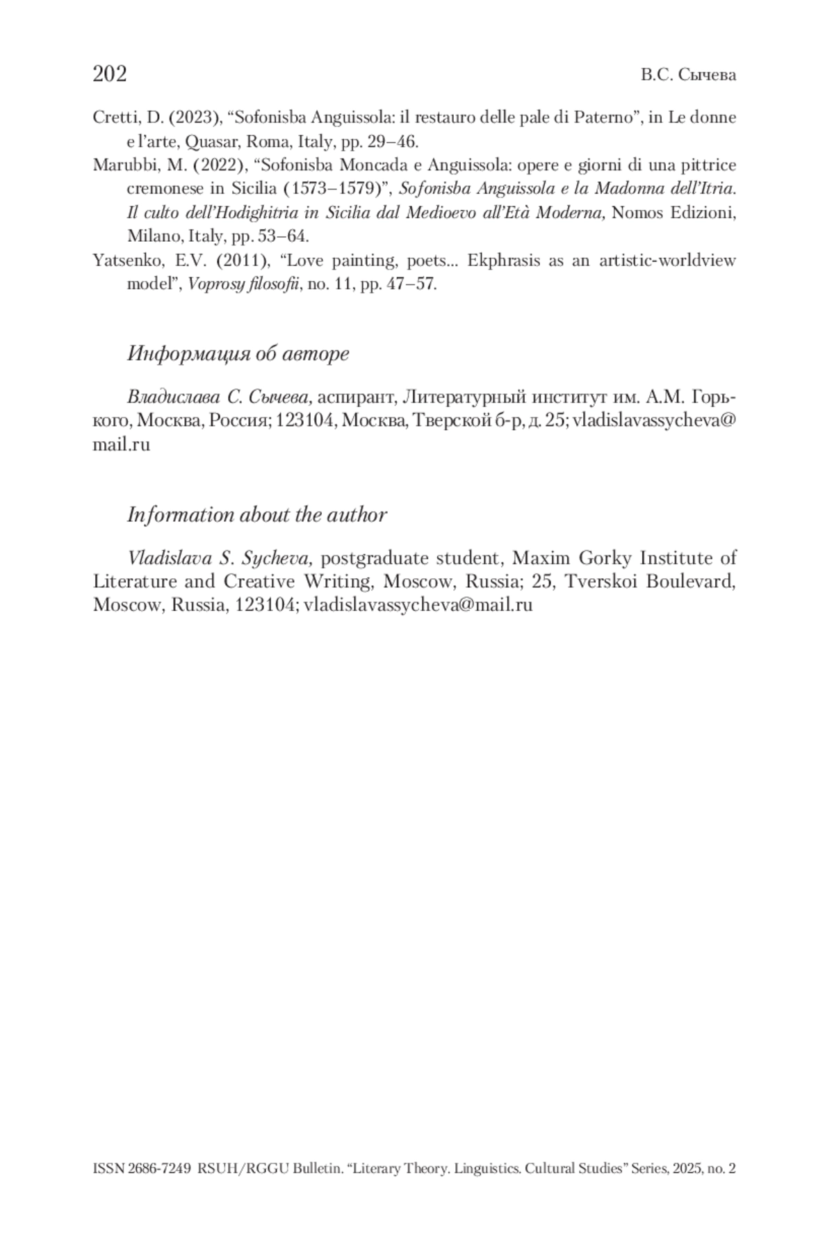 Журнал: ВЕСТНИК РГГУ. СЕРИЯ «ЛИТЕРАТУРОВЕДЕНИЕ. ЯЗЫКОЗНАНИЕ. КУЛЬТУРОЛОГИЯ»