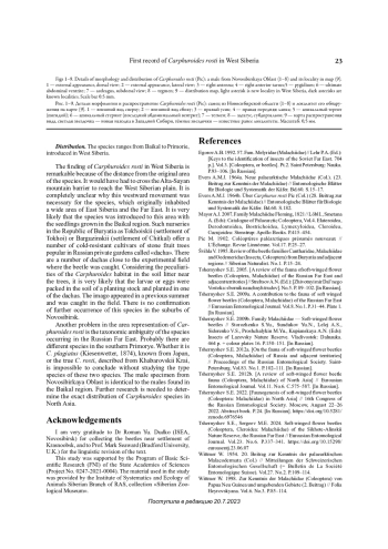 11. Tshernyshev S.E. 2012b. [A review of soft-winged flower beetle fauna (Coleoptera, Malachiidae) of North Asia] // Euroasian Entomological Journal. Vol.11. No.6. C.575-587. [In Russian].