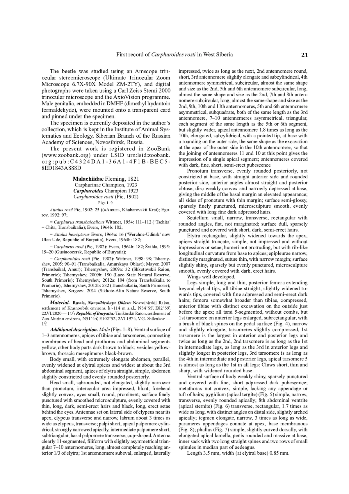 8. Tshernyshev S.E. 2009a. A contribution to the fauna of soft winged flower beetles (Coleoptera, Malachiidae) of the Russian Far East // Euroasian Entomological Journal. Vol.8. No.1. P.31-44. Plate 1. [In Russian].