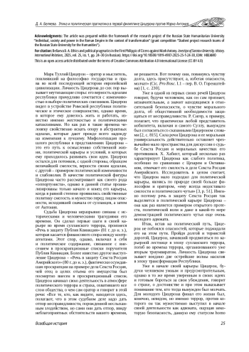 Статья: ЭТИКА И ПОЛИТИЧЕСКАЯ ПРАГМАТИКА В ПЕРВОЙ ФИЛИППИКЕ ЦИЦЕРОНА ПРОТИВ МАРКА АНТОНИЯ (2025)