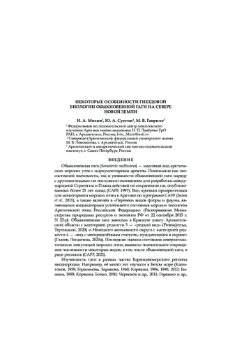 Статья: НЕКОТОРЫЕ ОСОБЕННОСТИ ГНЕЗДОВОЙ БИОЛОГИИ ОБЫКНОВЕННОЙ ГАГИ НА СЕВЕРЕ НОВОЙ ЗЕМЛИ (2024)
