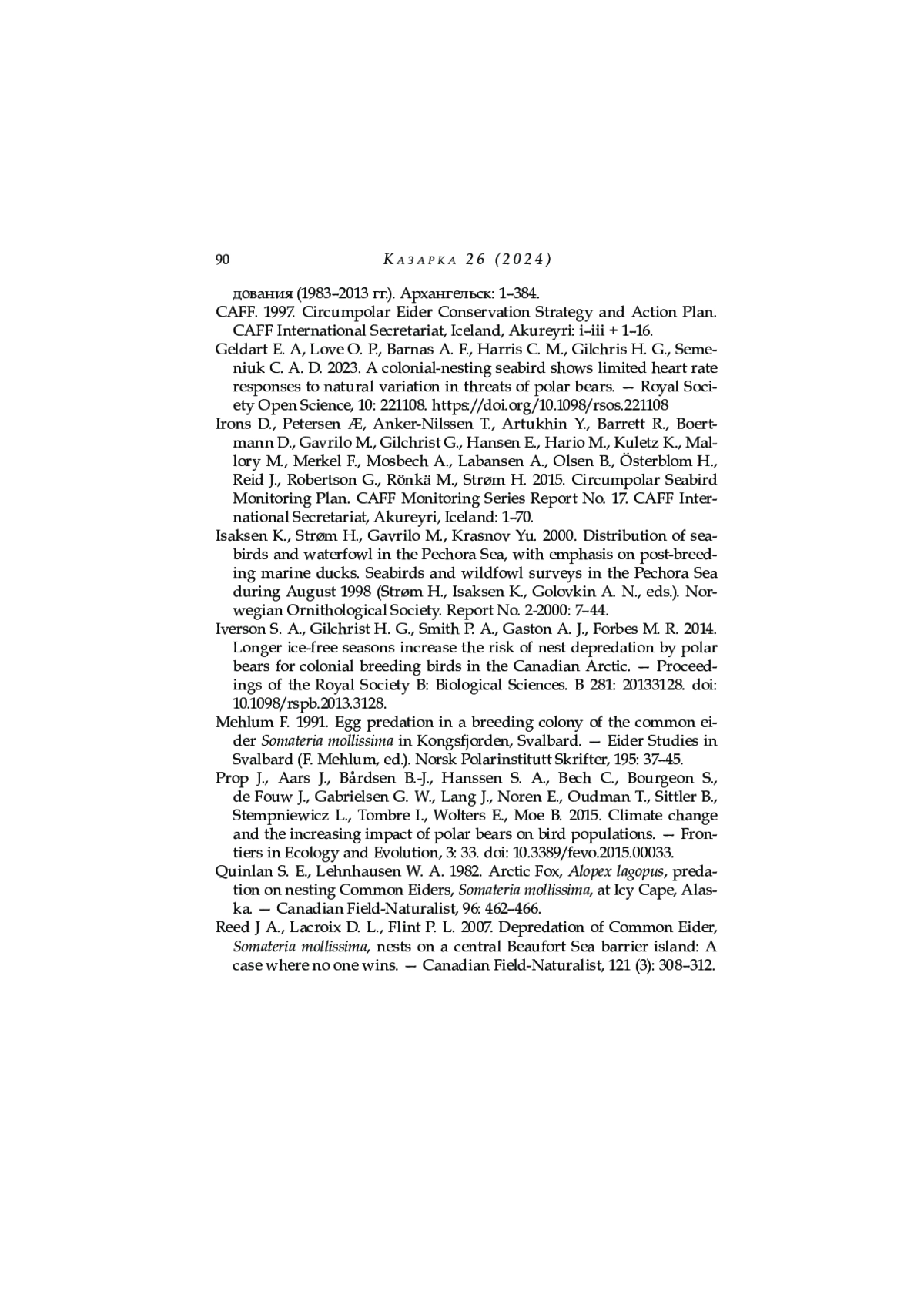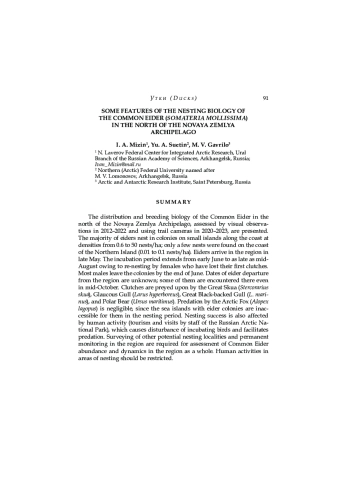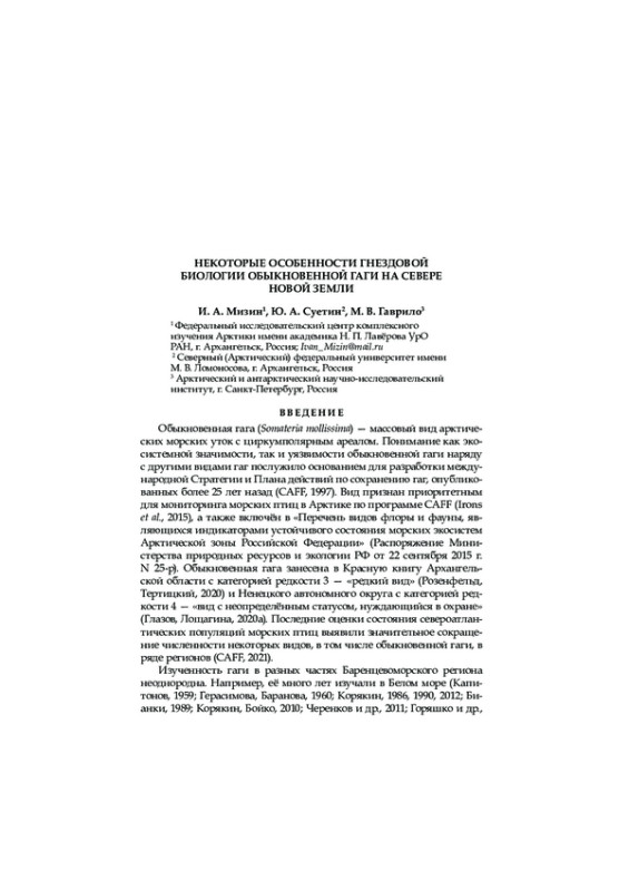 МИЗИН И. А., СУЕТИН Ю. А., ГАВРИЛО М. В. НЕКОТОРЫЕ ОСОБЕННОСТИ ГНЕЗДОВОЙ БИОЛОГИИ ОБЫКНОВЕННОЙ ГАГИ НА СЕВЕРЕ НОВОЙ ЗЕМЛИ // КАЗАРКА: БЮЛЛЕТЕНЬ РАБОЧЕЙ ГРУППЫ ПО ГУСЕОБРАЗНЫМ СЕВЕРНОЙ ЕВРАЗИИ. 2024. № 26
