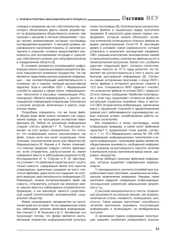 Статья: ПЕДАГОГИКА ПРОТИВОДЕЙСТВИЯ ФЕЙКАМ В СОЦИАЛЬНЫХ МЕДИА В СИТУАЦИИ ПОСТПРАВДЫ (2024)