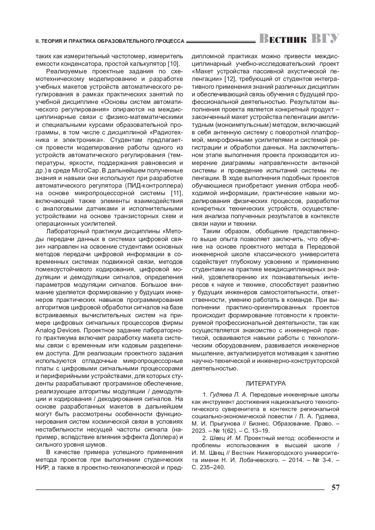 2. Швец И. М. Проектный метод: особенности и проблемы использования в высшей школе / И. М. Швец // Вестник Нижегородского университета имени Н. И. Лобачевского. - 2014. - № 3-4. - С. 235-240. EDN: TGICFT