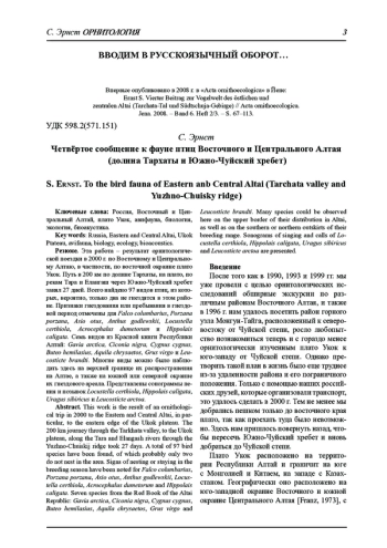 Ключевые фразы: Россия, восточный и цен- тральный алтай, плато укок, АВИФАУНА, биология, экология, биоакустика