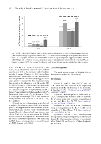 12. He N., Zhang Y., Duan X.L., Li J.H. et al. 2021. RNA interference-mediated knockdown of genes encoding spore wall proteins confers protection against Nosema ceranae infection in the European honey bee, Apis mellifera. Microorganisms. 9: 505. DOI: 10.3390/microorganisms9030505 EDN: CYZPFJ