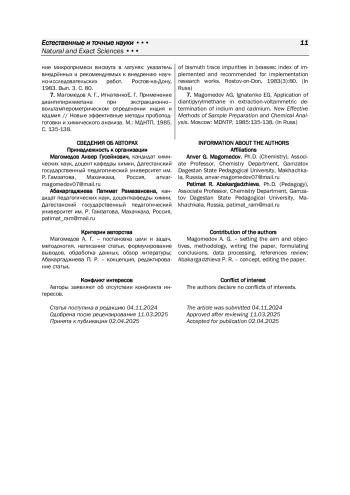 Статья: Инверсионное вольтамперометрическое определение висмута с диантипирилметаном в хлороформно-этанольном экстракте (2025)