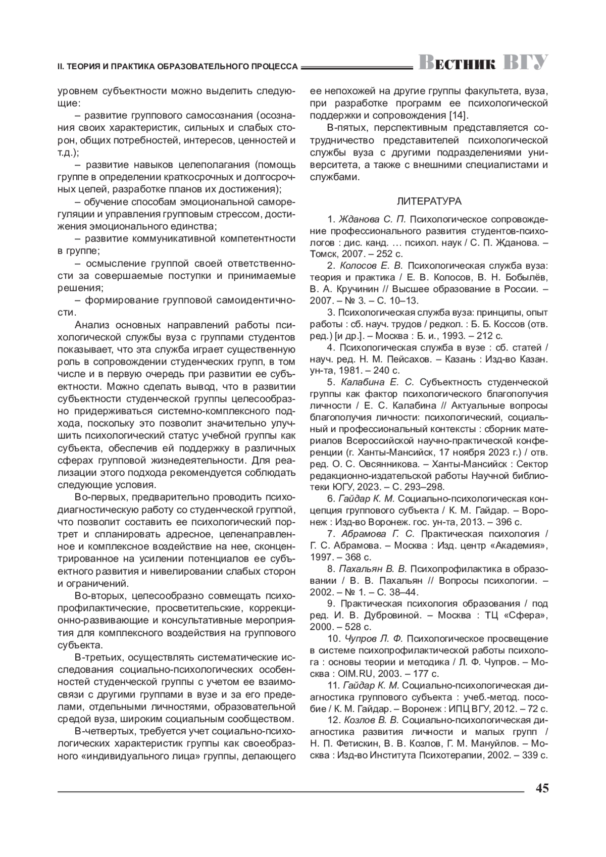 6. Гайдар К. М. Социально-психологическая концепция группового субъекта / К. М. Гайдар. - Воронеж: Изд-во Воронеж. гос. ун-та, 2013. - 396 с. EDN: RTDMIF