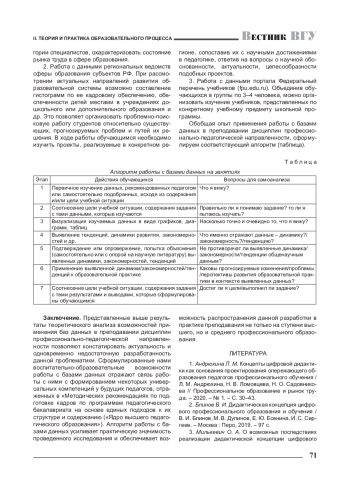 1. Андрюхина Л. М. Концепты цифровой дидактики как основания проектирования опережающего образования педагогов профессионального обучения / Л. М. Андрюхина, Н. В. Ломовцева, Н. О. Садовникова // Профессиональное образование и рынок труда. - 2020. - № 1. - С. 30-43. EDN: YWJWNE