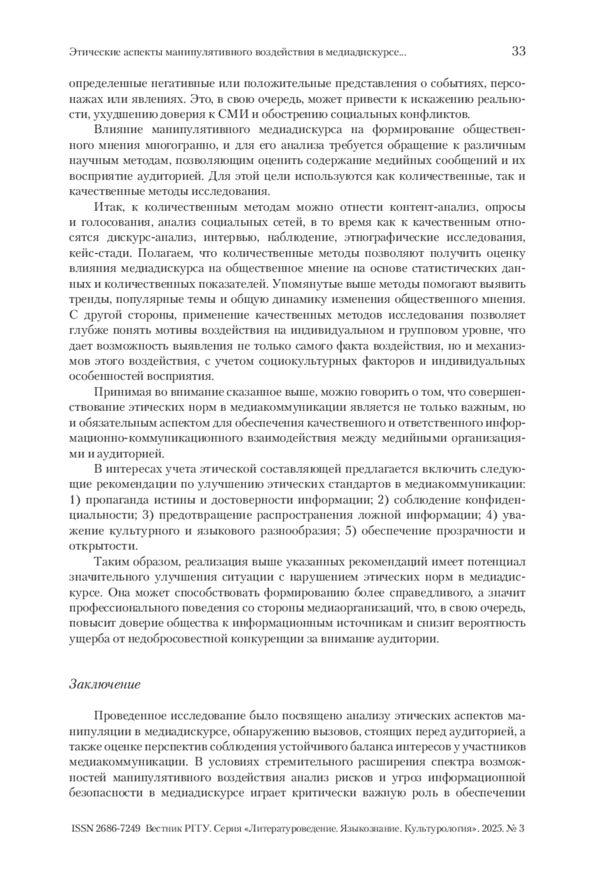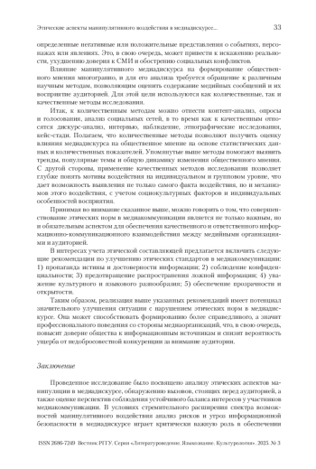 Статья: Этические аспекты манипулятивного воздействия в медиадискурсе: вызовы и перспективы (2025)