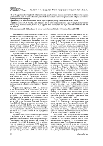 Биографиивоенныхиадминистративныхдеятелей второго– третьего эшелона XVI–XVII вв. не так часто попадают в сферу интересов исследователей. Однако такие биографии зачастую позволяют лучше и детальнее понять происходившие тогда события в стране. Тем более, что данная статья о воеводе Г. Ф. Елизарове касается и ранней истории г. Саратова, в том числе событий осени 1601 г., о которых исследователи ничего не сообщали.