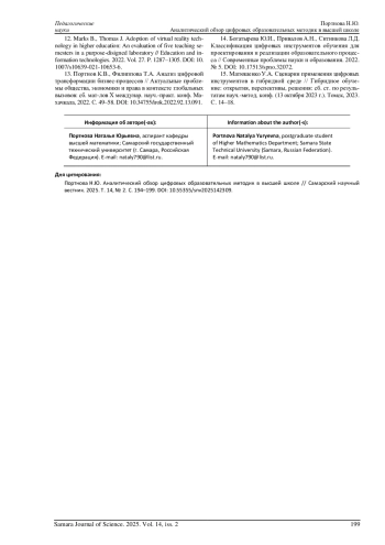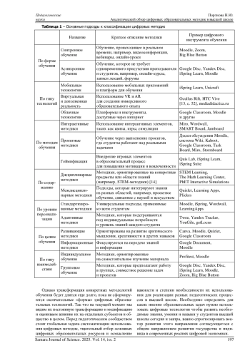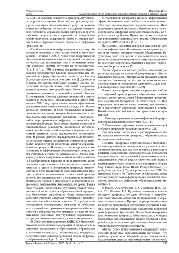 ПОРТНОВА Н. Ю. АНАЛИТИЧЕСКИЙ ОБЗОР ЦИФРОВЫХ ОБРАЗОВАТЕЛЬНЫХ МЕТОДИК В ВЫСШЕЙ ШКОЛЕ // САМАРСКИЙ НАУЧНЫЙ ВЕСТНИК. 2025. ТОМ 14, № 2