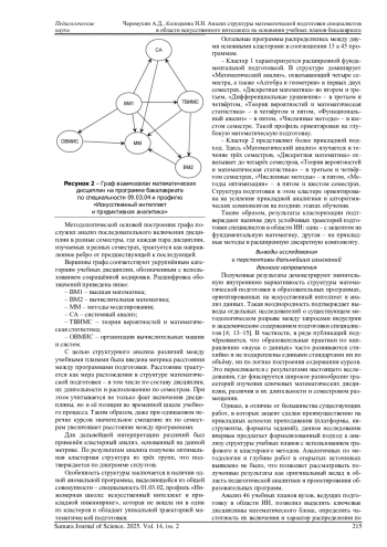 Ключевые фразы: МАТЕМАТИЧЕСКАЯ ПОДГОТОВКА, искусственный интеллект, ОБРАЗОВАТЕЛЬНАЯ ПРОГРАММА, УЧЕБНЫЙ ПЛАН, графовый анализ, КЛАСТЕРИЗАЦИЯ, траектория обучения
