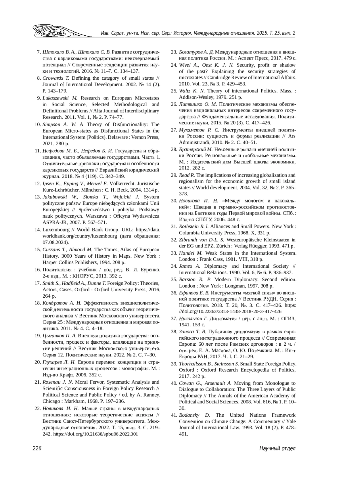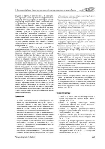 АЛИМОВА-НЕФЁДОВА М. Б. ОСНОВНЫЕ ХАРАКТЕРИСТИКИ ВНЕШНЕЙ ПОЛИТИКИ КАРЛИКОВЫХ ГОСУДАРСТВ ЕВРОПЫ В XX ВЕКЕ // ИЗВЕСТИЯ САРАТОВСКОГО УНИВЕРСИТЕТА. НОВАЯ СЕРИЯ. СЕРИЯ: ИСТОРИЯ. МЕЖДУНАРОДНЫЕ ОТНОШЕНИЯ. 2025. Т. 25 № 2