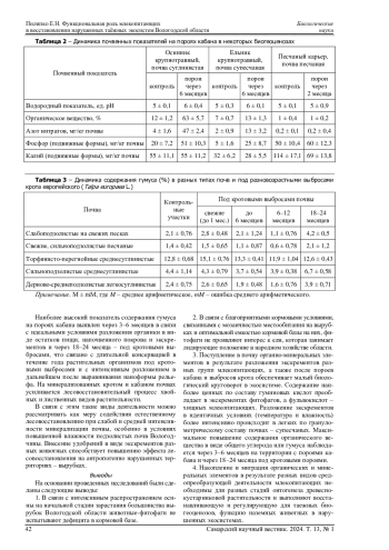 Статья: ФУНКЦИОНАЛЬНАЯ РОЛЬ МЛЕКОПИТАЮЩИХ В ВОССТАНОВЛЕНИИ НАРУШЕННЫХ ТАЁЖНЫХ ЭКОСИСТЕМ ВОЛОГОДСКОЙ ОБЛАСТИ (2024)