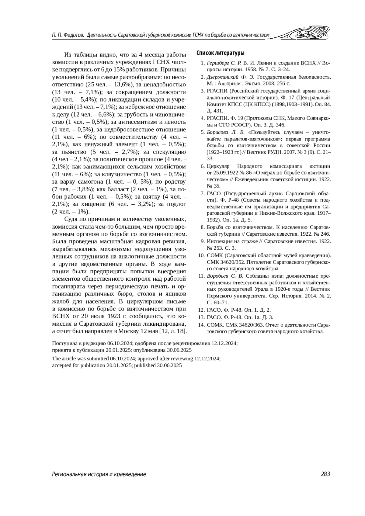 11. Воробьев С. В. Соблазны нэпа: должностные преступления ответственных работников и хозяйственных руководителей Урала в 1920-е годы // Вестник Пермского университета. История. 2014. Вып. 2 (25). С. 60-71. EDN: SZZMVN