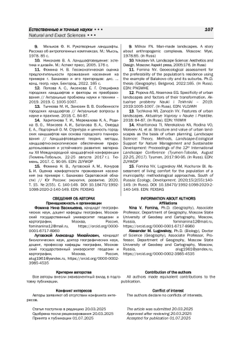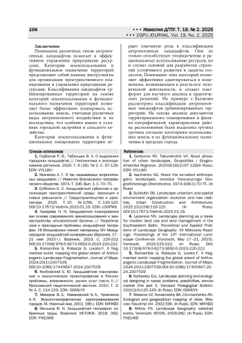 Статья: КЛАССИФИКАЦИЯ АНТРОПОГЕННЫХ ЛАНДШАФТОВ УРБАНИЗИРОВАННЫХ ТЕРРИТОРИЙ (НА ПРИМЕРЕ Г. БАЛАКОВО) (2025)