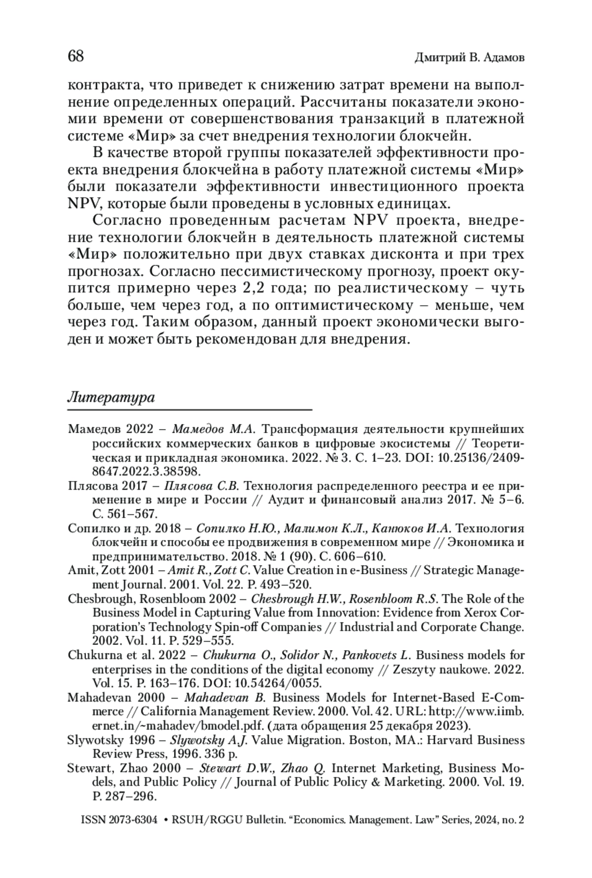 Предложен и обоснован процесс внедрения технологий блокчейн в работу платежной системы «Мир». Сформированы проектные предложения и обоснован проект внедрения технологий блокчейн в работу платежной системы «Мир» с последующим расчетом экономического эффекта от практической реализации проектных предложений.