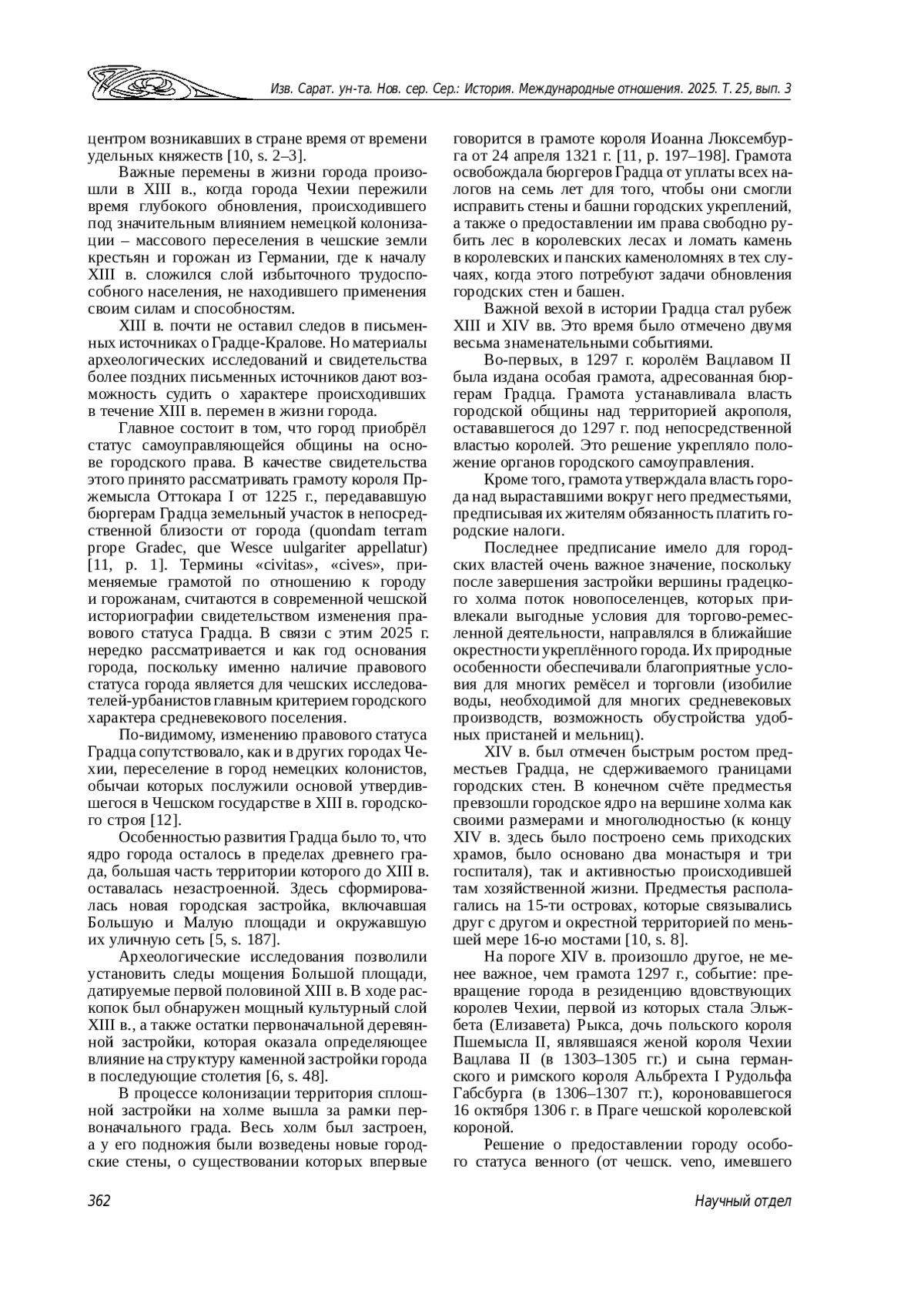 ГАЛЯМИЧЕВ А. Н. ЧЕШСКИЙ ГОРОД ГРАДЕЦ-КРАЛОВЕ: ОСНОВНЫЕ ВЕХИ СРЕДНЕВЕКОВОЙ ИСТОРИИ // ИЗВЕСТИЯ САРАТОВСКОГО УНИВЕРСИТЕТА. НОВАЯ СЕРИЯ. СЕРИЯ: ИСТОРИЯ. МЕЖДУНАРОДНЫЕ ОТНОШЕНИЯ. 2025. Т. 25 № 3