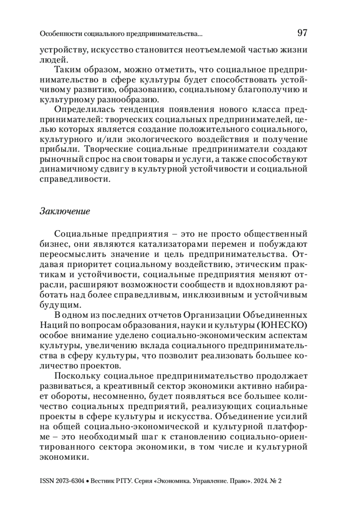 Статья: Особенности социального предпринимательства в сфере культуры (2024)