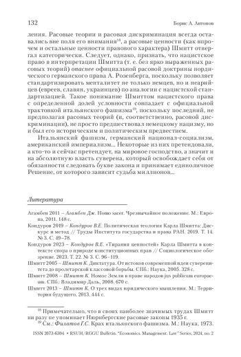 Автор статьи предпринимает попытку анализа понятия суверен с позиции юридического децизионизма и политической теологии – учений, разработанных немецким философом и правоведом Карлом Шмиттом (1888–1985).