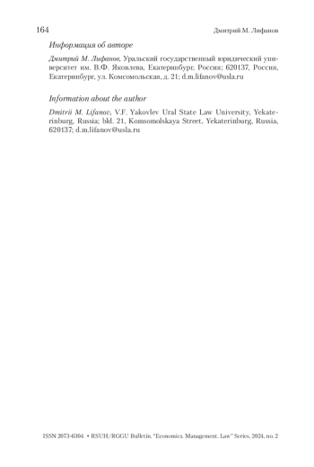 Журнал: ВЕСТНИК РГГУ. СЕРИЯ: ЭКОНОМИКА. УПРАВЛЕНИЕ. ПРАВО