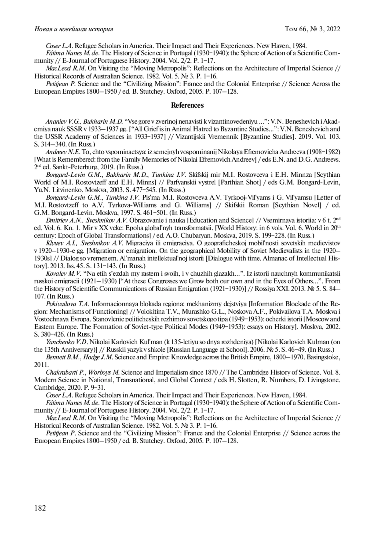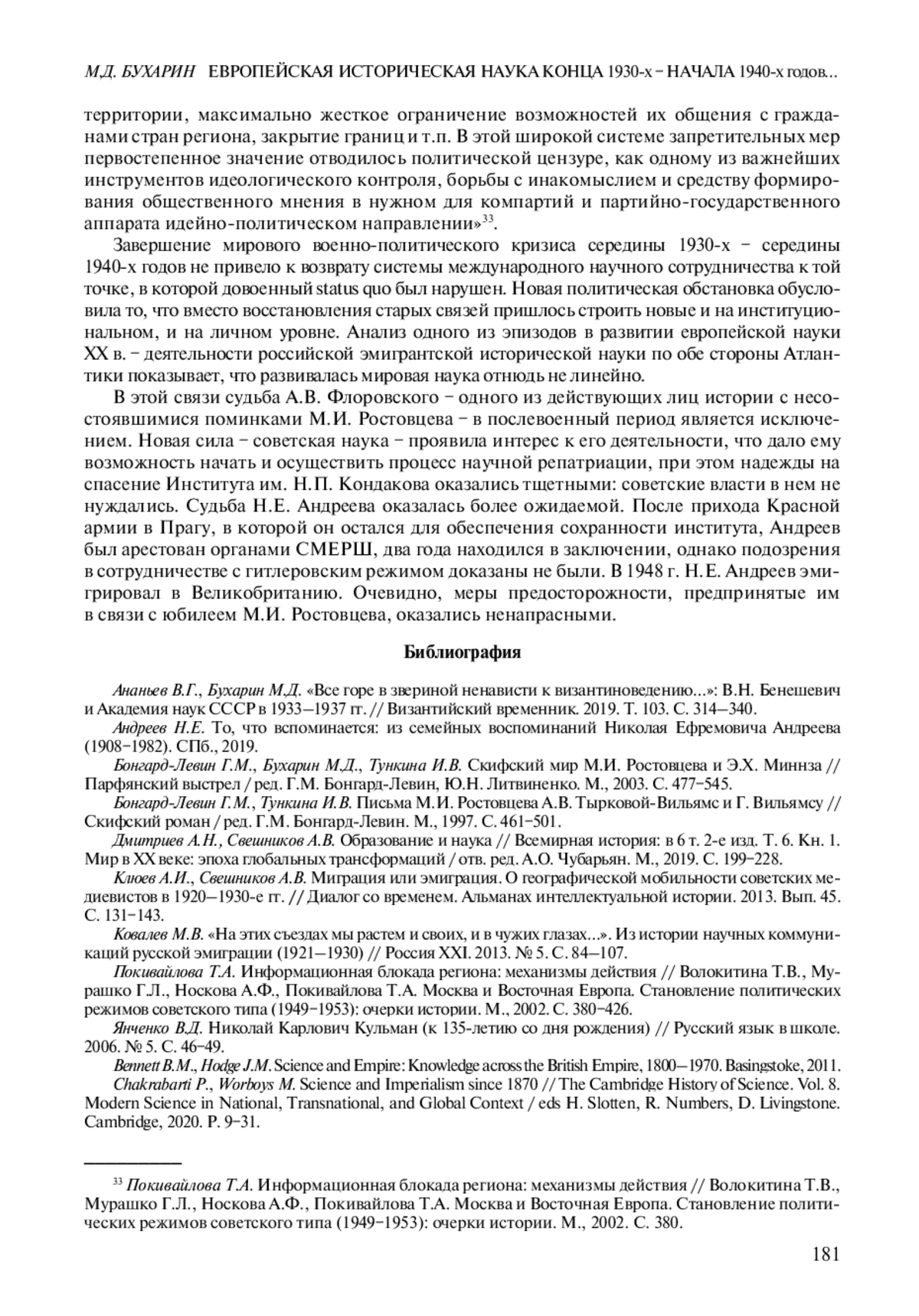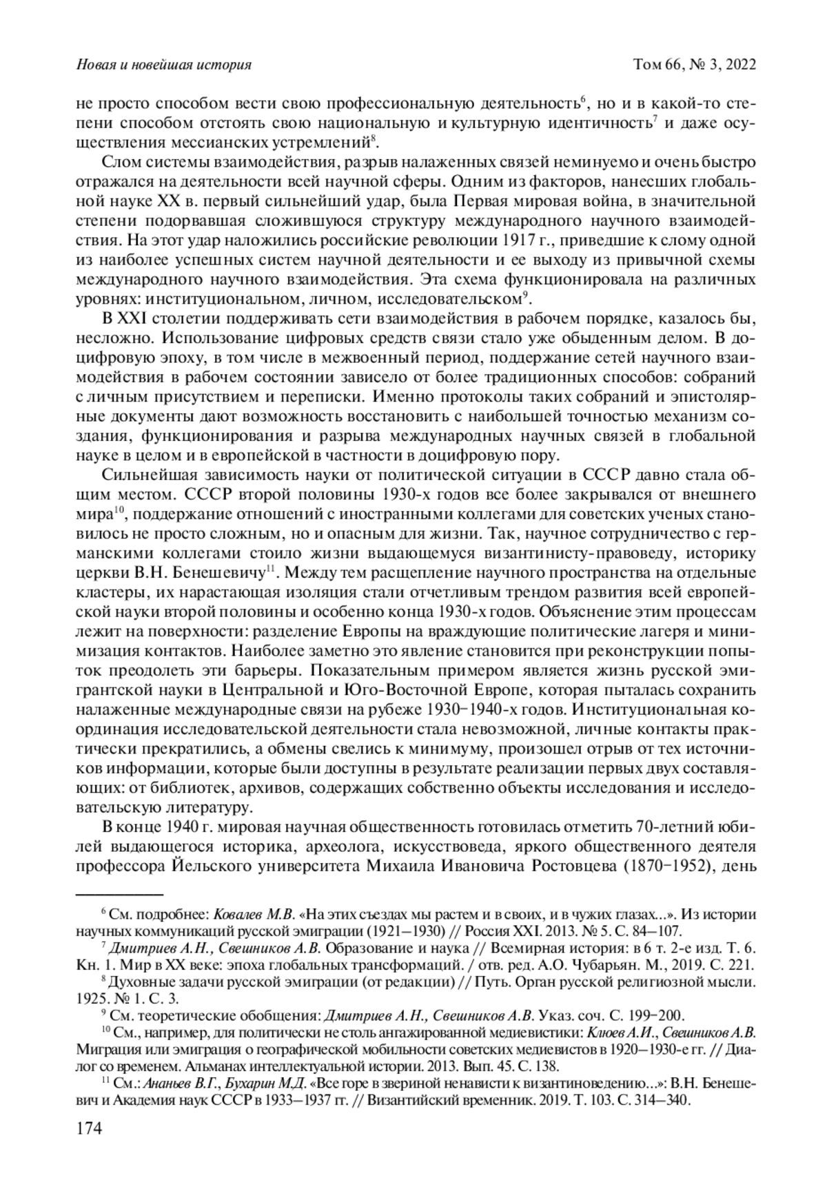 БУХАРИН М. Д. ЕВРОПЕЙСКАЯ ИСТОРИЧЕСКАЯ НАУКА КОНЦА 1930-Х - НАЧАЛА 1940-Х ГОДОВ: МЕЖДУНАРОДНЫЕ СВЯЗИ И ХИМЕРЫ ИЗОЛЯЦИИ // НОВАЯ И НОВЕЙШАЯ ИСТОРИЯ. 2022. № 3