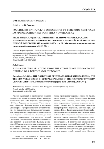 2. Орлов А.А. Союз Петербурга и Лондона. Российско-британские отношения в эпоху наполеоновских войн. М., 2005. EDN: SUPJHP