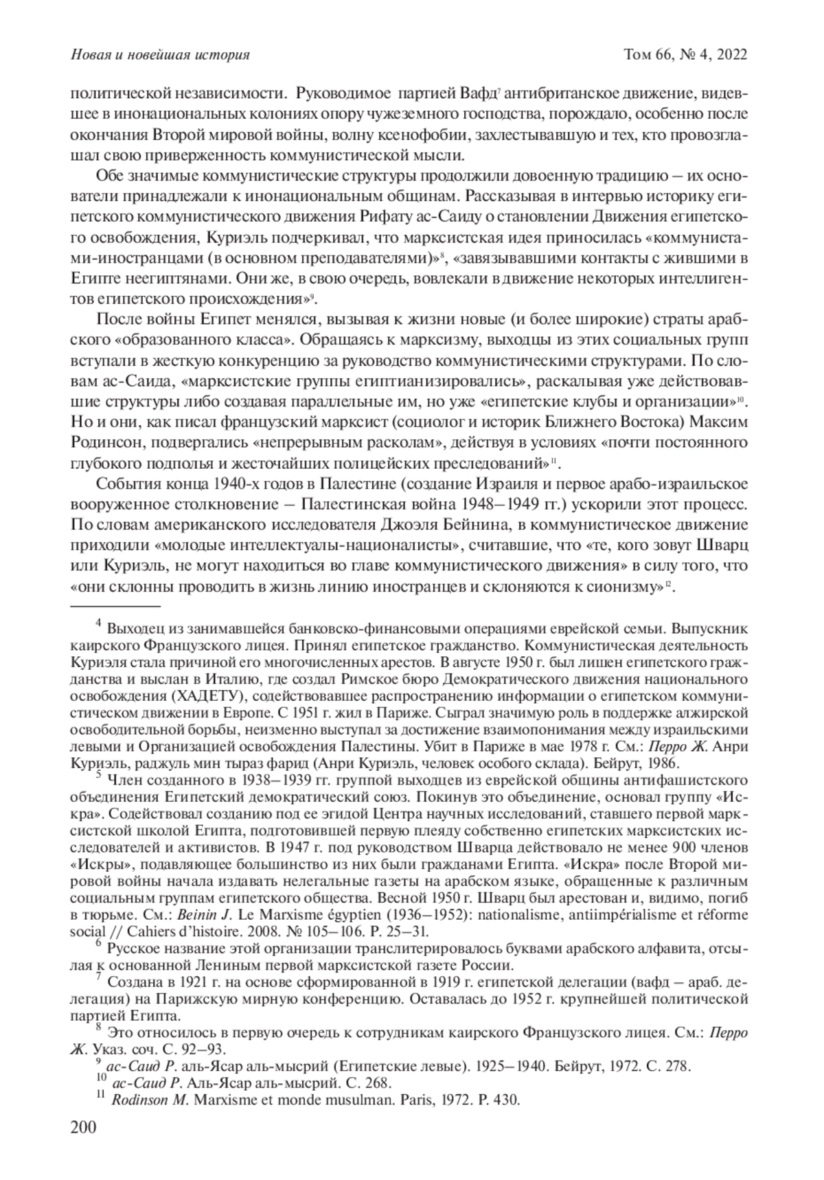 11. Beinin J. Le Marxisme égyptien (1936-1952): nationalisme, antiimpérialisme et réforme social // Cahiers d’histoire. 2008. № 105-106. P. 25-31.
