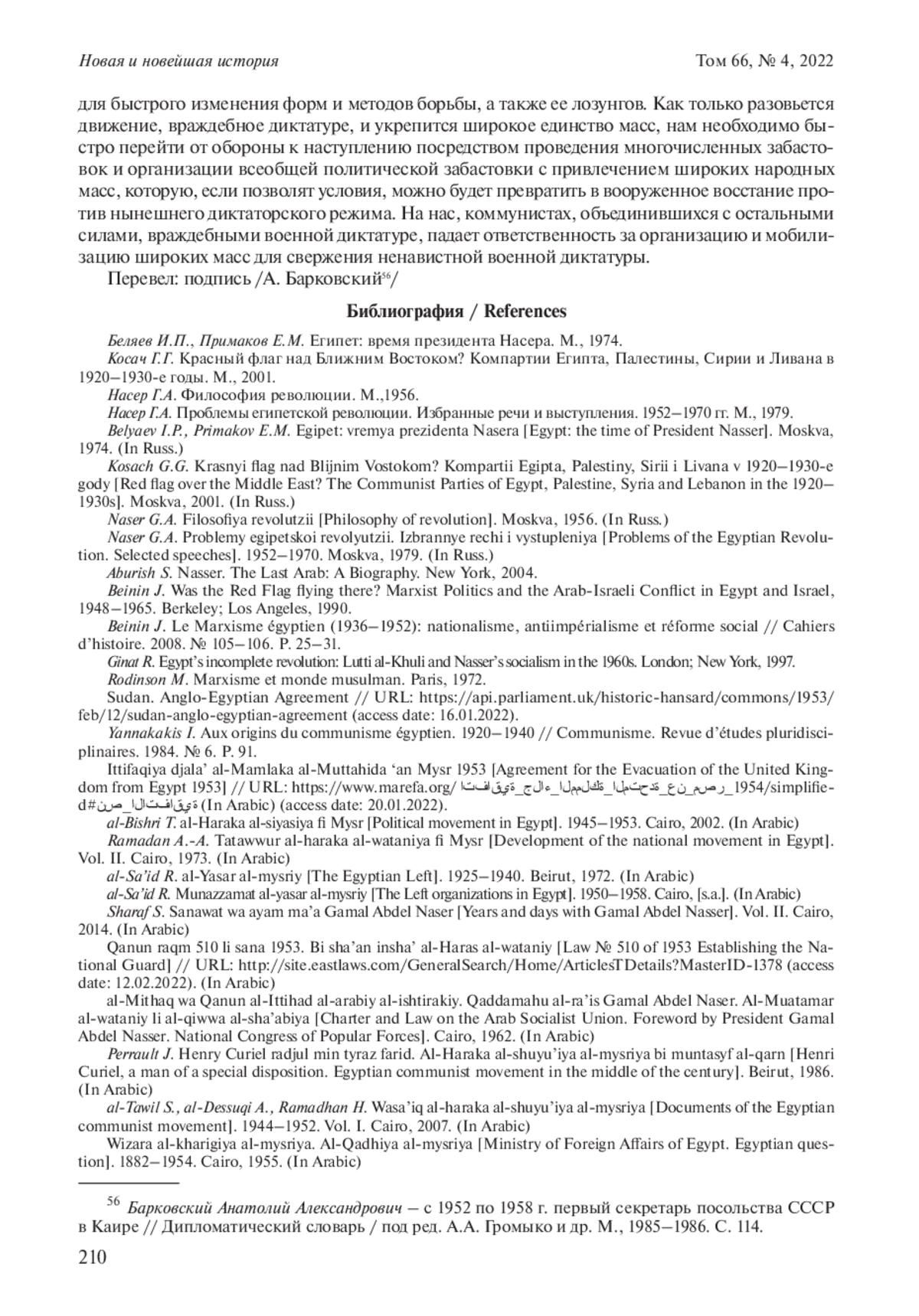 25. al-Tawil S., al-Dessuqi A., Ramadhan H. Wasa’iq al-haraka al-shuyu’iya al-mysriya [Documents of the Egyptian communist movement]. 1944-1952. Vol. I. Cairo, 2007. (In Arabic).