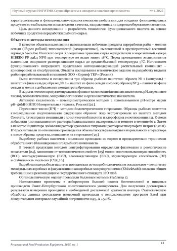 Статья: Разработка технологии функционального паштета на основе побочных продуктов переработки рыбного сырья (2025)