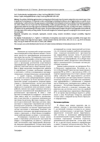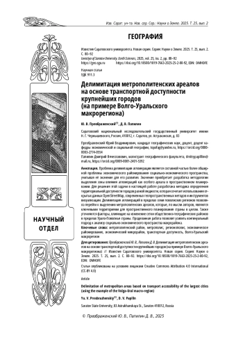Проблема делимитации агломерации является составной частью более обширной проблемы экономического районирования социально-экономического пространства, учитывая её значение для его развития. Значение приобретает разработка методологии выделения зоны влияния агломераций как особого ареала в пространственном планировании. Для решения этой задачи в настоящей работе разработана методика определения территориальной доступности городов разной людности, которая сочетает использование открытых данных OpenStreetMap, современных геопространственных методов и инструментов визуализации. Делимитация агломераций в пределах семи поволжских регионов позволила перейти к выделению метрополитенских ареалов, которые, по мысли авторов, являются ключевыми территориями для пространственного планирования страны в целом. Также уточняются факторы, влияющие на изменение сетки общественно-географических районов в пределах Урало-Поволжья страны. Проделанная работа позволит усилить континуальный подход к анализу социально-экономического пространства макрорайона.