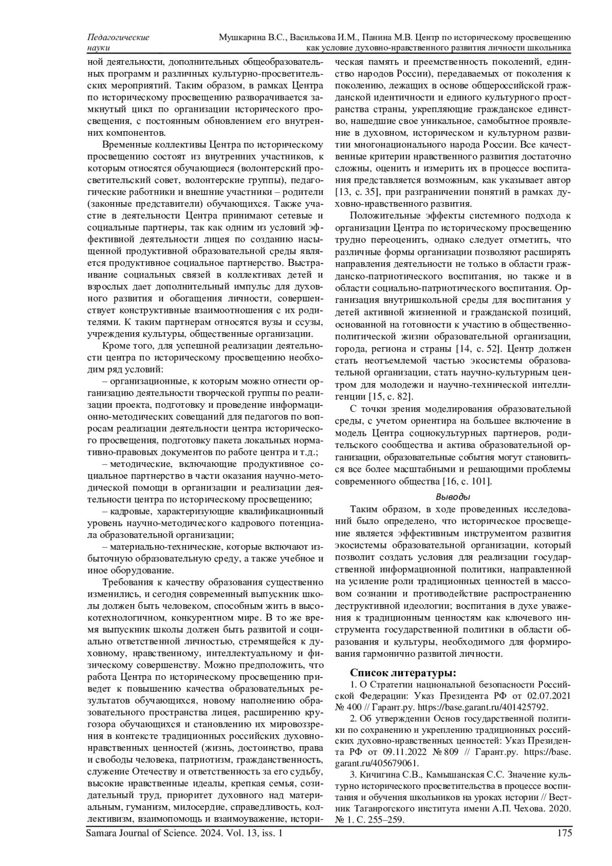 13. Симакова Т.П. Духовно-нравственное развитие личности школьника: государственный заказ и педагогическое осмысление: учеб.-метод. пособие. Чебоксары: Среда, 2023. 84 с. EDN: JHJLFM