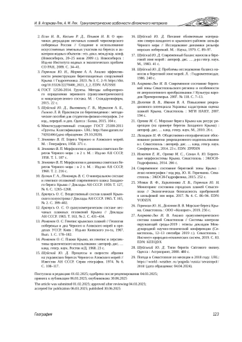 АГАРКОВА-ЛЯХ И. В., ЛЯХ А. М. ГРАНУЛОМЕТРИЧЕСКИЕ ОСОБЕННОСТИ ОБЛОМОЧНОГО МАТЕРИАЛА СОВРЕМЕННЫХ ПЛЯЖЕЙ СЕВАСТОПОЛЯ // ИЗВЕСТИЯ САРАТОВСКОГО УНИВЕРСИТЕТА. НОВАЯ СЕРИЯ. СЕРИЯ НАУКИ О ЗЕМЛЕ. 2025. Т. 25 № 2