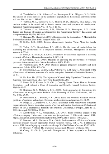 Быстро меняющаяся на рынке туристских услуг среда, требования потребителей и условия конкуренции создают необходимость постоянного совершенствования деятельности туристских организаций. Кроме того, в период неопределенности и кризисов необходимо учитывать воздействие внешних факторов, таких как пандемии или экономические изменения, на эффективность их деятельности. Учитывая современные темпы цифровизации, традиционные методы оценки эффективности могут оказаться недостаточно информативными и адаптивными. Важность повышения эффективности туристских организаций подчеркивает необходимость глубокого анализа и пересмотра существующих подходов к ее оценке, что позволит выявить их сильные и слабые стороны, а также адаптировать к новым реалиям. Такой подход не только усилит позиции организаций на рынке, но и повлияет на общую устойчивость и привлекательность рынка туристских услуг, что, в свою очередь, может способствовать развитию других смежных секторов экономики.