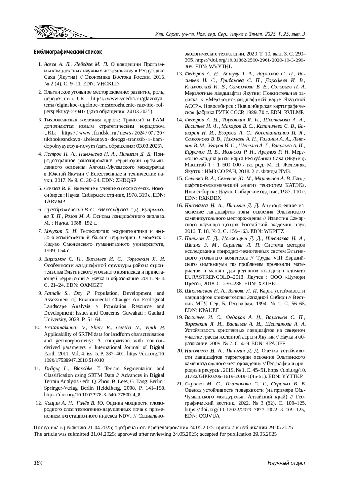 Статья: ГЕОСИСТЕМНЫЕ ИССЛЕДОВАНИЯ ТЕРРИТОРИИ ТИХООКЕАНСКОЙ ЖЕЛЕЗНОЙ ДОРОГИ В БАССЕЙНЕ Р. МУЛАМ (2025)