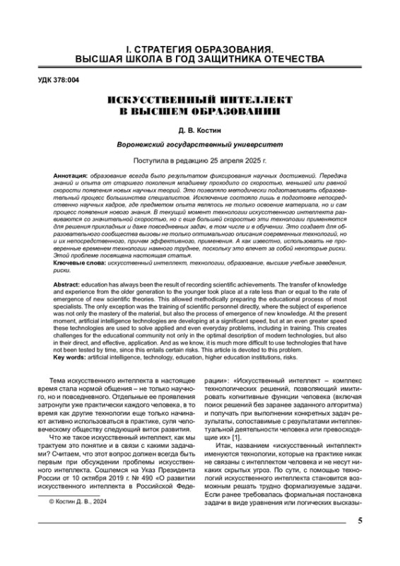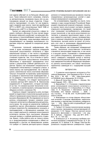 Образование всегда было результатом фиксирования научных достижений. Передача знаний и опыта от старшего поколения младшему проходило со скоростью, меньшей или равной скорости появления новых научных теорий. Это позволяло методически подготавливать образовательный процесс большинства специалистов. Исключение состояло лишь в подготовке непосредственно научных кадров, где предметом опыта являлось не только освоение материала, но и сам процесс появления нового знания. В текущий момент технологии искусственного интеллекта развиваются со значительной скоростью, но с еще большей скоростью эти технологии применяются для решения прикладных и даже повседневных задач, в том числе и в обучении. Это создает для образовательного сообщества вызовы не только оптимального описания современных технологий, но и их непосредственного, причем эффективного, применения. А как известно, использовать не проверенные временем технологии намного труднее, поскольку это влечет за собой некоторые риски. Этой проблеме посвящена настоящая статья.
