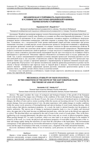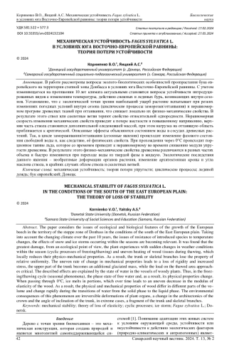 Статья: МЕХАНИЧЕСКАЯ УСТОЙЧИВОСТЬ FAGUS SYLVATICA L. В УСЛОВИЯХ ЮГА ВОСТОЧНО-ЕВРОПЕЙСКОЙ РАВНИНЫ: ТЕОРИЯ ПОТЕРИ УСТОЙЧИВОСТИ (2024)